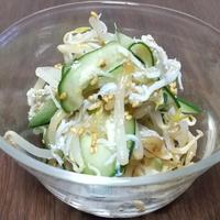 もやしが少なめだったのでキュウリも入れました!みんなが好きな中華ごま味で美味しかったです。