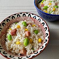 冷凍むき枝豆・ハーフベーコン使用。バターと黒胡椒、ほんのり塩味がいい感じ。炊飯後に枝豆投入で彩り綺麗✏️