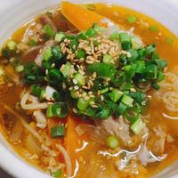 コクのある濃厚なスープがご飯に絡んで、思わずおかわりしたくなる美味しさです。カルビ肉の旨みと、コチュジャンのピリ辛な風味が絶妙にマッチ。白菜、小松菜、ニラなど、お好みの野菜をたっぷり入れても美味しく、具材のアレンジ自在なのも魅力です。料理初心者でも簡単に作れ、スープジャーに入れてお弁当にも最適。寒い季節の定番メニューになること間違いなしです。