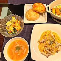 - 4 器に盛り付けて粉チーズをかけて出来上がりです。