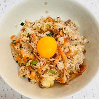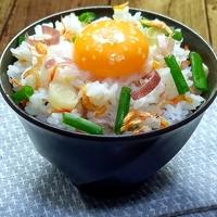 ミョウガと桜エビの混ぜご飯の卵黄のせ レシピ・作り方