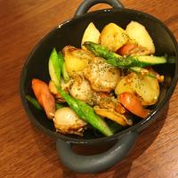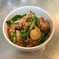 - 6 アスパラガスに火が通ったら(A)を加えて全体に味がなじむまで中火で炒め、火から下ろします。器に盛り付けて完成です。