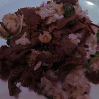 とっても美味しかったです!お米がバターを吸って濃厚になっており、漬け込んだ牛肉にもしっかりと味が染みていました。他の方のたべれぽを参考に、ルッコラは小松菜で代用しました。(ルッコラ売っていなかった...)