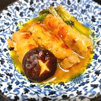 余ってたキャベツを粗めに千切りしたものをお肉で巻き、余ってた小松菜と椎茸を入れて煮ました。