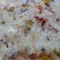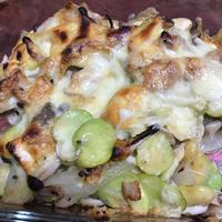 - 3 耐熱皿に2を入れ、ピザ用チーズをのせ、トースターで5分程チーズに焼き色が付くまで焼きます。