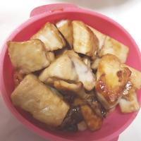 - 4 2の表面全体が白っぽくなり火が通ってきたら、調味料を入れ、汁気が少なくなり照りが出たら火を止めます。