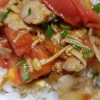 ちょっと加熱しすぎてトマト崩れちゃいました笑