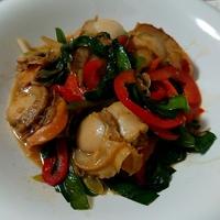調味料の加減は、お好みで調整してください。 今回はボイルした生食用のベビーホタテを使用しています。加熱用をお使いの場合は中に火が通るまでよく炒めてください。