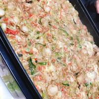 冷凍シーフードミックスを使って手軽に本格的なもんじゃ焼きが楽しめます。キャベツをたっぷり使い、薄力粉は控えめなのでヘルシー。焼き方のコツは水分を飛ばしてカリッと香ばしいお焦げを作ること。隠し味にベビースターや桜エビを加えると出汁が効いて旨みアップ!チーズやもちをトッピングしたり、キムチを加えたりとアレンジも自在です。お店顔負けの味わいに家族みんな大満足間違いなしです。