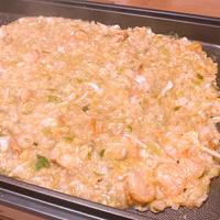 冷凍シーフードミックスを使ってフライパンで作りました。良い感じにおこげも出来てメチャメチャ美味しかったです。とろけるチーズをトッピングしたら旨さ倍増✌️キャベツもたくさん食べられるし少量の薄力粉を使うだけなのでとってもヘルシーでダイエット中には最高ですね!アレンジも出来そうなのでまたリピートします。