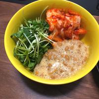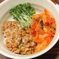 辛いものが苦手な方はキムチの分量を調整してください。 納豆はひきわり納豆で代用していただいてもおいしくお召し上がりいただけます。