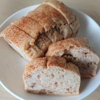 これで十分。まだ砂糖減らせそう。冷めるとしっとりするので、そのあと切った方がいい。