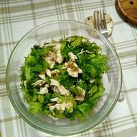 鶏肉の水煮缶で私もやりました!わさび菜の感じが生かされて、シャキシャキでむっちゃ簡単。これ何にでもいけそう菜合え方。サラダ菜ゲットしたらまた作ります!