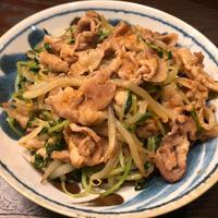 - 3 中火に熱したフライパンにごま油をひき、2を入れ炒めます。豚バラ肉の色が変わったら1、もやしを入れ1分程炒めます。