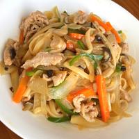 - 3 肉に火が通ったらうどん、(A)を加えうどんをほぐしながら炒めます。全体に味が馴染んだら火から下ろします。