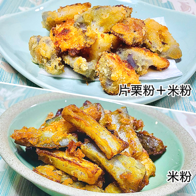 簡単美味しくて何度も作ってます✨✨ レンコンは食感の好みで縦切りして、コメント参考にお塩をひとつまみ追加してます。 片栗粉のみだとサクっとした食感、片栗粉と米粉を1対1だとサクカリ、米粉のみだとカリカリになるので、気分によって粉を変えてます😋