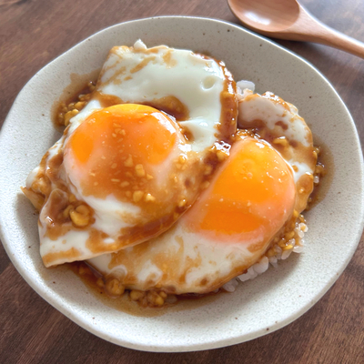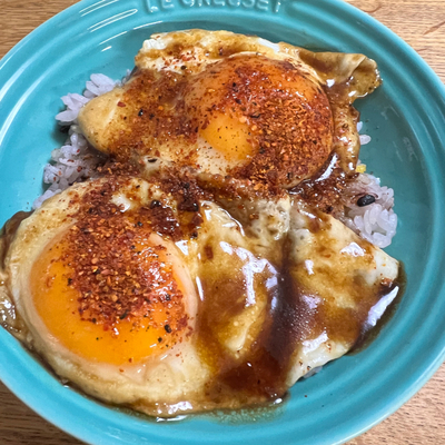 カンタン調味料で♪ すぐたべられる目玉焼き丼◎ グツグツ…甘ダレの味♡ おいしい。