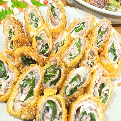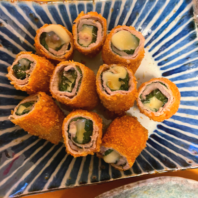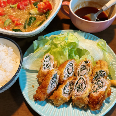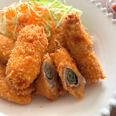 冷蔵庫にあったえのき、チーズも巻いてみました!しそが足りなくなった分はニラで代用。野菜の分太くなり揚げる時に巻いてるのが解けるんではと心配しましたが全然大丈夫でしたー。衣の色薄めだけど家族に好評でした。また作ります!