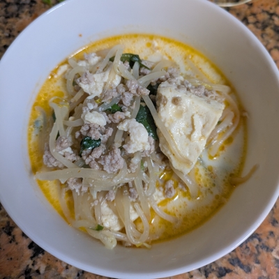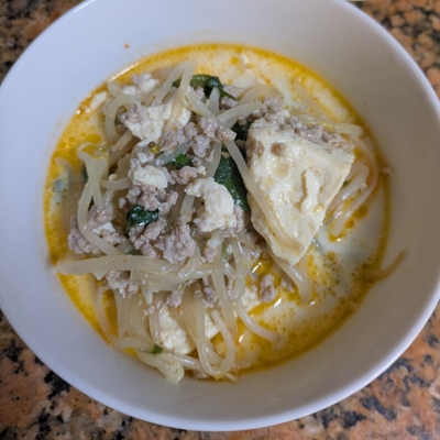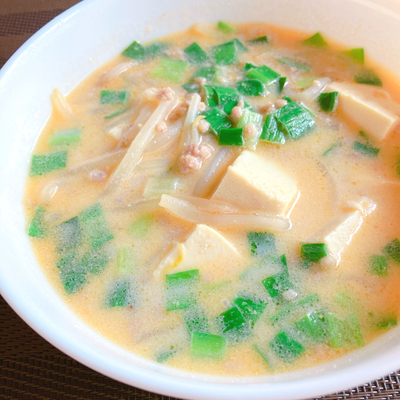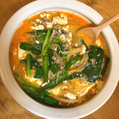 とっても簡単にできました!辛さが苦手なので豆板醤の量を少なめにしましたが、味噌のコクと豆乳のまろやかさがクセになる味です。また作ります!