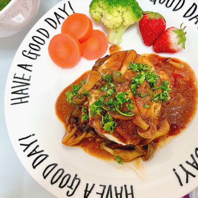 完全ワンパン!キノコの煮込みハンバーグ