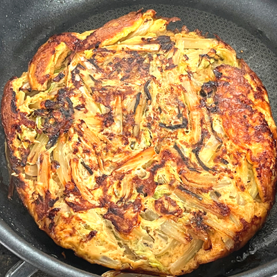 美味しかったです。 白菜が小さめだったので塩昆布も少し減らしたけど、それでもちょっと味が濃かった。次はもう少し少なめにしてみます。 小さい卵だったので2個使ったら、お好み焼きっぽくなりました。いい感じでした。 また作ります。