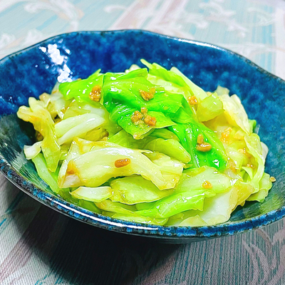 ササっと出来て美味しかったです✨✨ごま油で食べるキャベツ副菜に飽きていたのでまた作ります👍 ニンニクは控えめ、目分量で作ったので、味を見て醤油麹を調整しています。