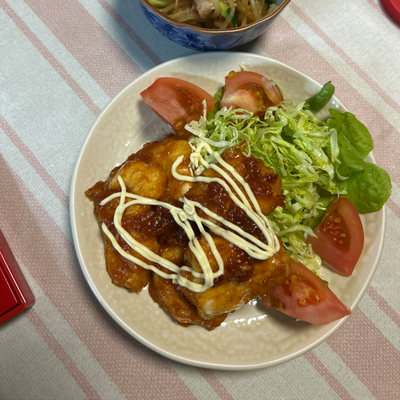 ♦︎point ◎むね肉にマヨネーズと酒をもみ込み、片栗粉でコーティングすることでしっとりと柔らかな仕上がりになります。 ◎むね肉を焼く時は弱めの火力でじっくり焼くと固くならずにしっとり仕上がります。 ◎ソースを煮詰めることで玉ねぎの辛味が抜けてコクのあるソースに仕上がります。鶏むね肉を煮詰めすぎると固くなってしまうので1度鶏むね肉を取り出してから、先にソースだけを煮詰めてください。 ◎マヨネーズはポリ袋の角に入れ先を少しだけ切るか、つまようじで穴を開けて絞るとお店みたいな細〜い線になりおしゃれに仕上がります♪