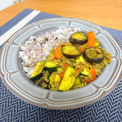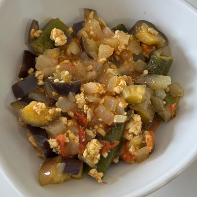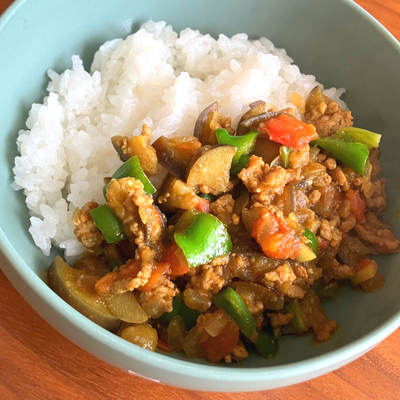ピーマンの代わりにオクラ(8本)を入れました! また、豚ひき肉の代わりに、鶏むねひき肉(200g)入れました。
