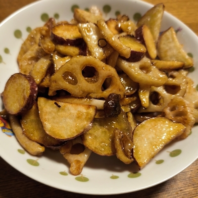 こっくり甘辛。さつまいも、れんこん、舞茸デリ風惣菜